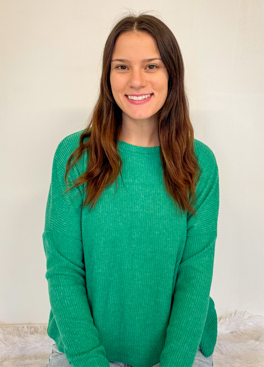 Ribbed Kelly Green Long Sleeve Sweater