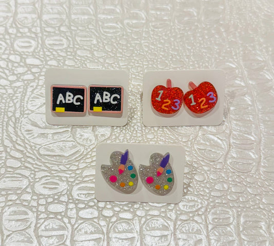 Acrylic Teacher Stud Sparkle Earrings