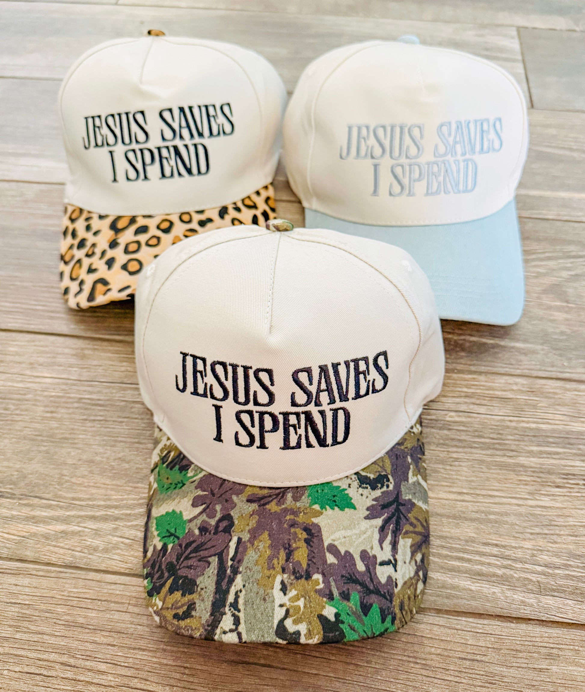 Jesus Saves I Spend Canvas Hat- 4 Colors