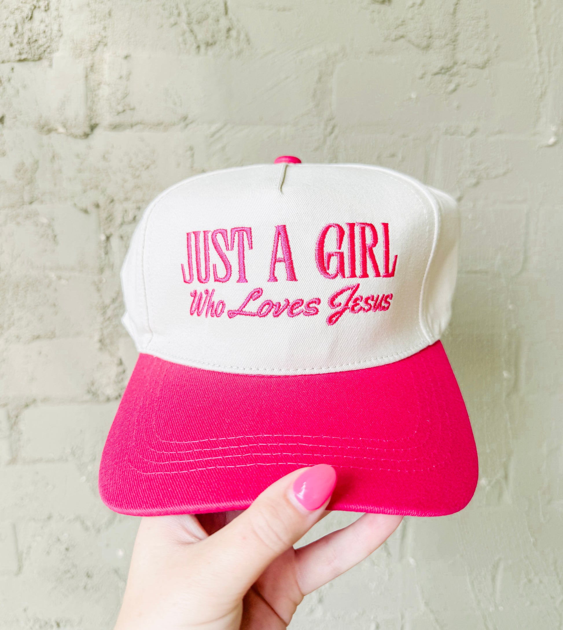 Just A Girl Who Loves Jesus Canvas Hat- Hot Pink