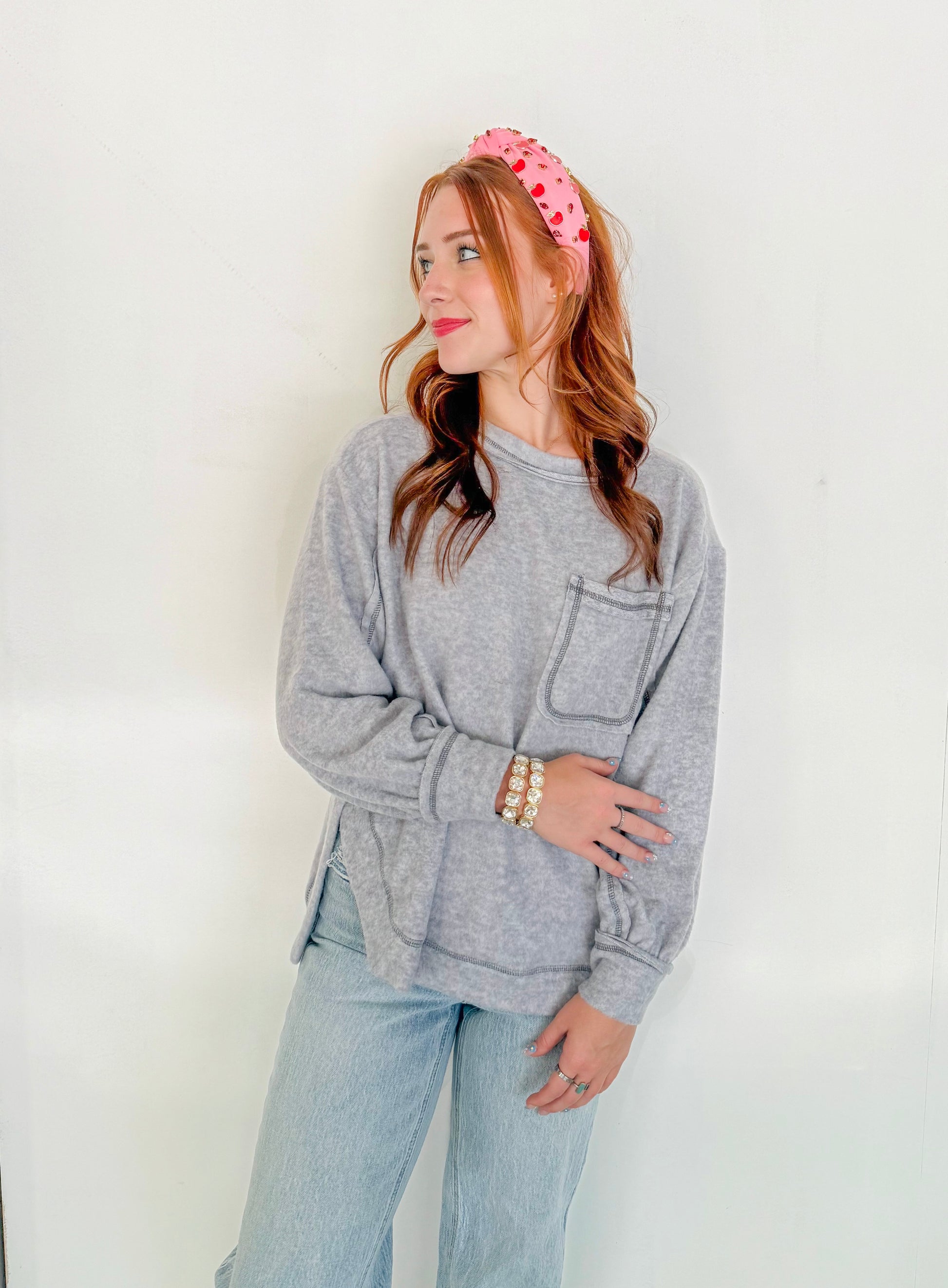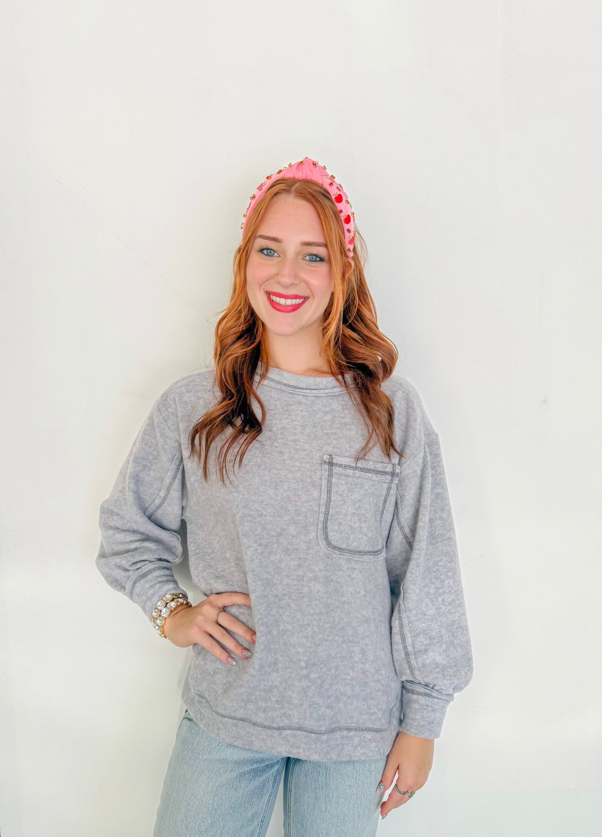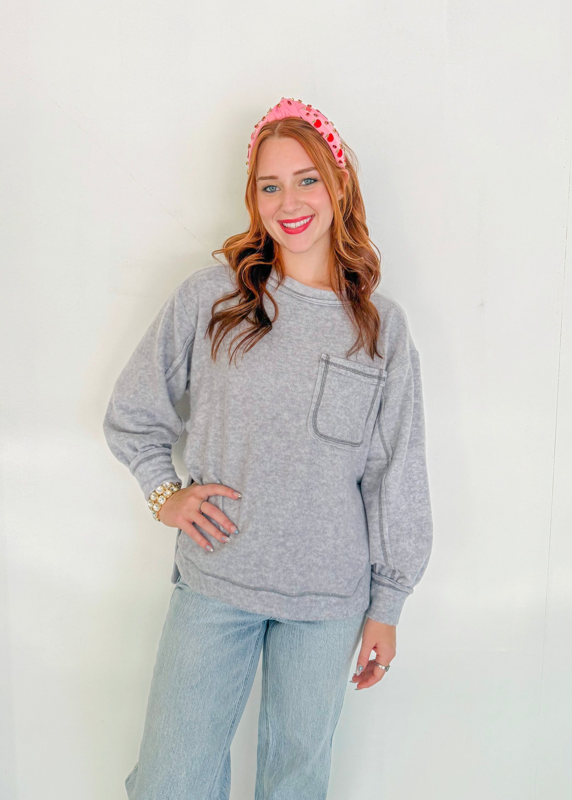 Soft Round Neck Sweater- Grey