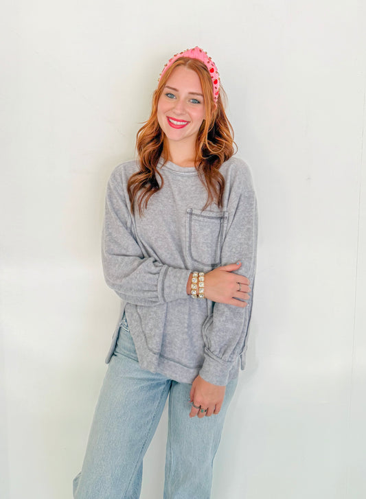 Acid Wash Fleece Sweatshirt- Ash Mocha